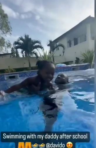 Superstar singer, Davido has been spotted giving his son, Ifeanyi, swimming lessons on Thursday October 27. The dotting father videos of him bonding with his son as they took a dip in the water.