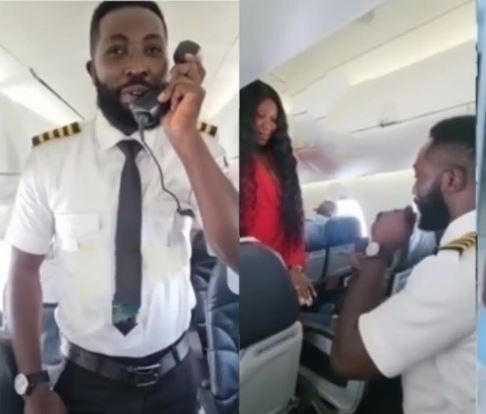 A video which has gone viral, captures the moment the Nigerian pilot left the cockpit to propose to his lover.