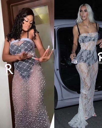 Her outfit has sparked reactions with her revealing outfit inspired by American reality star, Kim Kardashian.