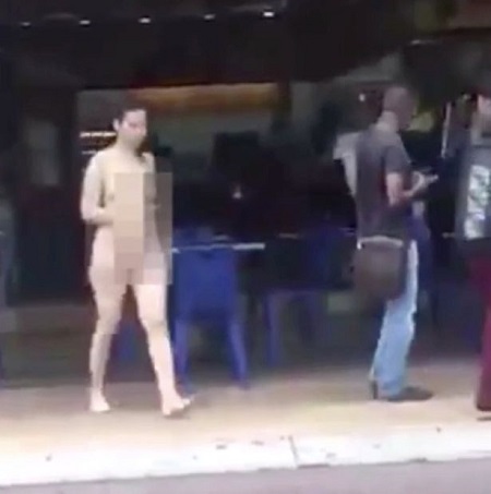 Shocking! Stark N*ked Woman Walks Out of Restaurant Smoking A Cigarette in Broad Daylight (Photos+Video)
