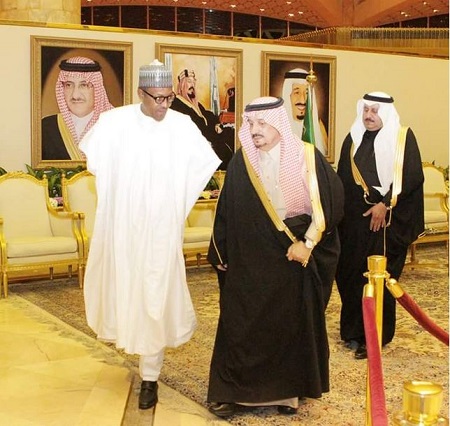 President Buhari was welcomed yesterday, 22nd of February by governor of Riyahd, Prince Faisal Bandar BN Abdulaziz Al-Saud at the royal terminal of Riyahd international airport.