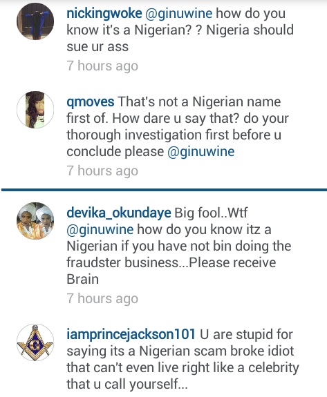 As expected, his statement offended Nigerians, and they are dragging him for filth, but some of his fans claim that the singer never meant that the scam was being masterminded by a Nigerian, only that he described same as a scam Nigerians are famous for.
