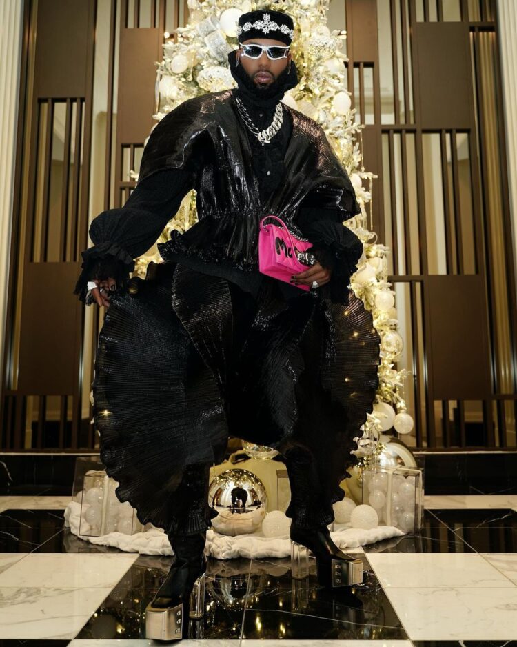 Swanky attended the wedding party of reality TV star, Porsha, and her husband, Simon Guobadia, in Atlanta over the weekend, and decided to make a huge statement with his outfit.