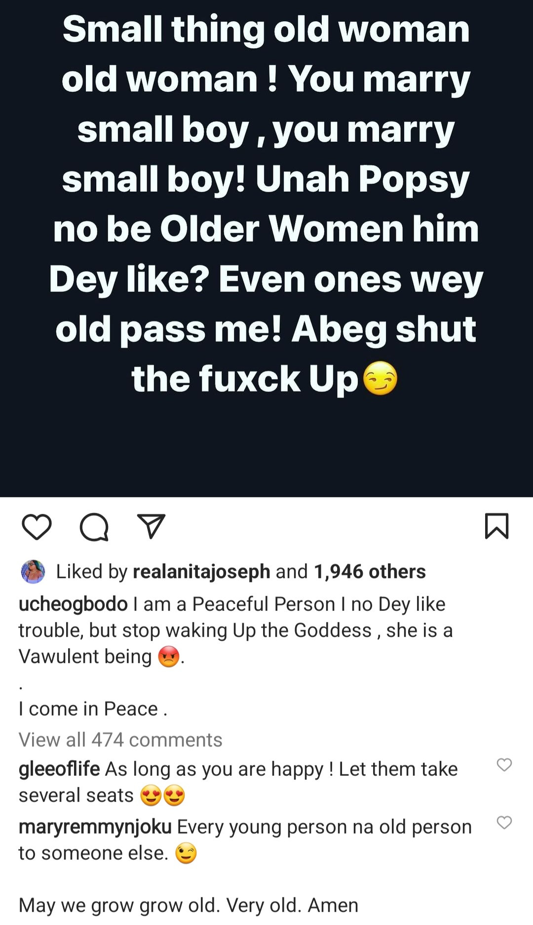 Uche Ogbodo, the popular Nigerian actress, has slammed all the critics who shame her for going into a relationship with younger man.