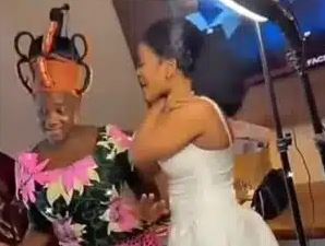 BBNaija Lockdown winner, Phyna could not hide her excitement after meeting Nollywood actress, Mercy Johnson, on a movie set.