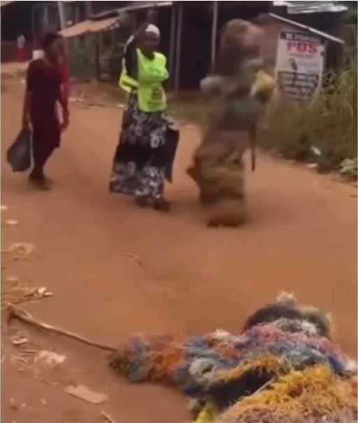 The woman put on an intense prayer session on the street and as she was doing that, the masquerades decided to play along.