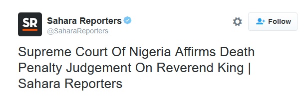 The Supreme Court of Nigeria has today, ruled that the General Overseer of the Christian Praying Assembly, Reverend King must die by hanging for murder after dismissing his appeal for lack of merit.