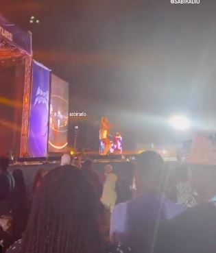 The moment Ayra Star fell on the stage while performing in Ghana pic.twitter.com/wcwefeUP66