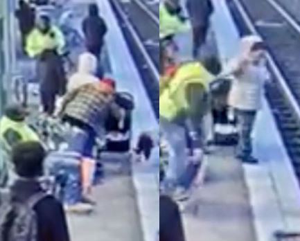 "The child landed face-first onto the metal rail and rocks before being quickly rescued from the train tracks. The child reported a severe headache and had a small red mark on their forehead after the incident.
