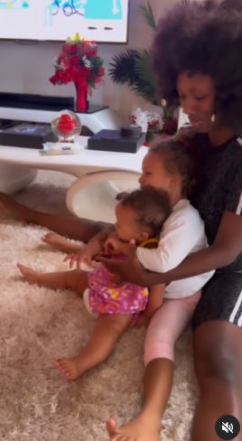 Social media users are reacting to a video of singer, Korra Obidi stretching her daughters.