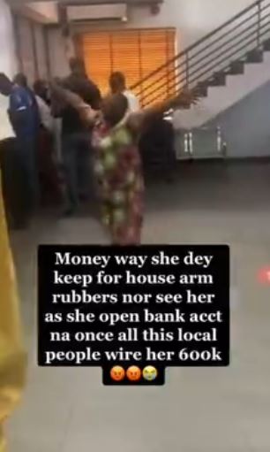 In a video shared online, the woman is seen prancing around the hall, crying for her money.
