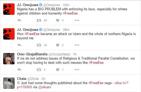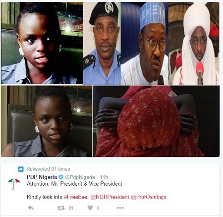 The 14-year-old girl, Ese Oruru is an Urhobo-born teenager, whose mother, Mrs. Rose Oruru, is a food vendor in Opolo, Bayelsa State. Nigerians have launched #FreeEse hashtag to get the authorities involved in this matter.