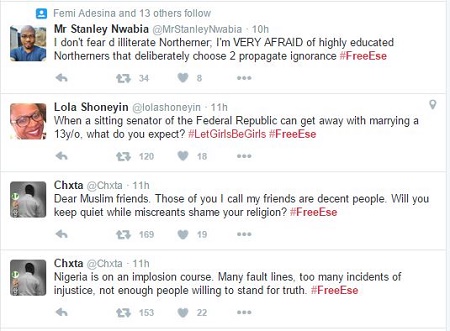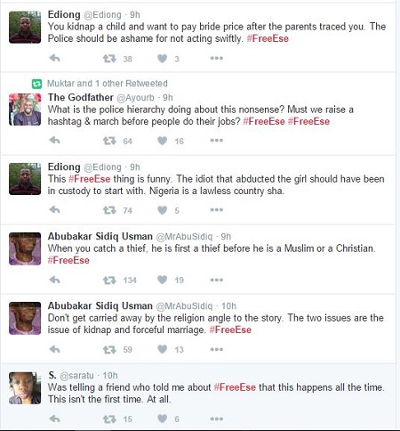 Nigerians have cried out and expressed sadness after Ese, who was 13 as at the time of her alleged abduction, was taken to Kano, by Yunusa, where he converted her to Islam and married her. Ese’s parents had since last August made trips to Kano, where they tried unsuccessfully to get their daughter.