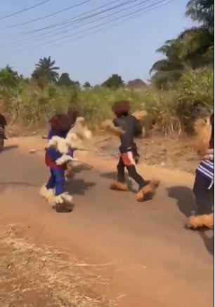 A video has been shared online showing the moment masquerades engaged in a street fight.
