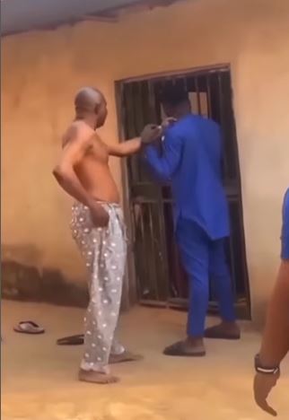 In the video, the elderly landlord could be seen confronting the tenant. He held onto the tenant's cloth while making his demands.