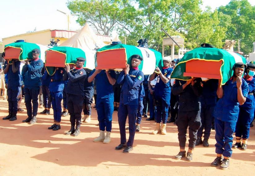 Seven personnel of the Nigeria Security and Civil Defence Corps (NSCDC) shot dead by bandits in Birnin Gwari Local Government Area of Kaduna State, have been buried.