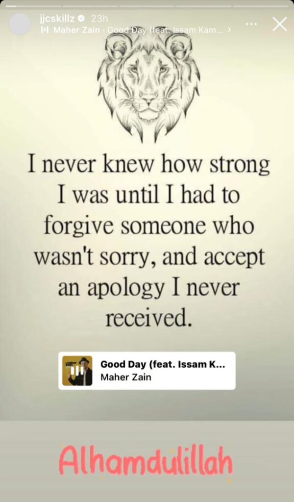 The rapper took to his Instastories to post a quote that highlighted the true test of one’s strength as forgiveness.