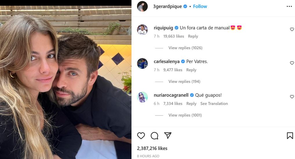Ex-Barcelona player, Gerard Pique has taken to Instagram to share a photo with his girlfriend, Clara Chia Marti, weeks after his ex Shakira dissed him in a new track.