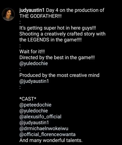 “Day 4 on the production of THE GODFATHER!! It’s getting super hot in here guys! Shooting a creatively crafted story with the LEGENDS in the game! Wait for it!!”