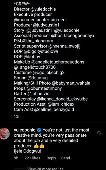 “You’re not just the most creative mind, you’re very passionate about the job and a very detailed producer. ljele Odogwu!”