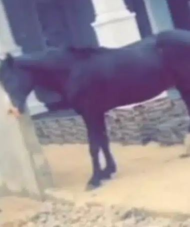 In a video he shared online, he showed off the alleged horse he had tied to a post in front of his house.