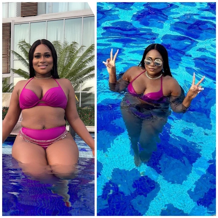 Nollywood actress, Christabel Ekeh has wowed her fans after sharing new pictures posing in bikini.