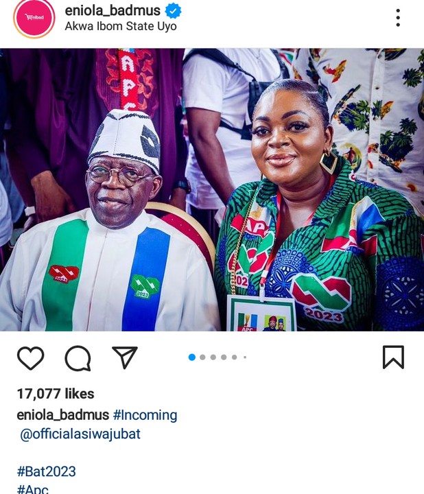 This comes after she had uploaded a picture of herself and Tinubu and tagged it 'incoming'.