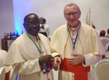 The Nigerian bishop joined other clerics to welcome the Pontiff to Africa.