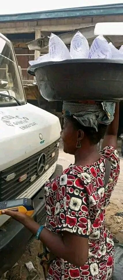 In a viral post shared on social media on Sunday, the sachet water seller was seen holding a Point of Sale machine while hawking her wares.