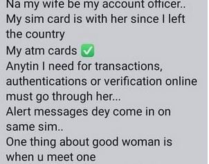 According to the man who hails from Enugu state, all transactions go through her and his ATM and SIM cards are with her.