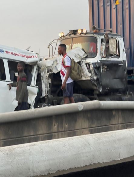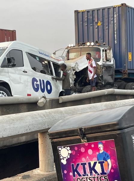 One life has been lost in a tragic accident involving an 18-seater commercial bus belonging to GUO motors, a MAC truck and an SUV car which occurred on the Kara bridge, Lagos-Ibadan Expressway.