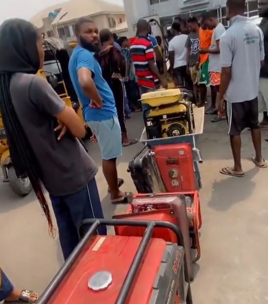 As fuel scarcity persists, some residents were forced to take their generators to the filling station after attendants decided to stop selling to customers carrying kegs.