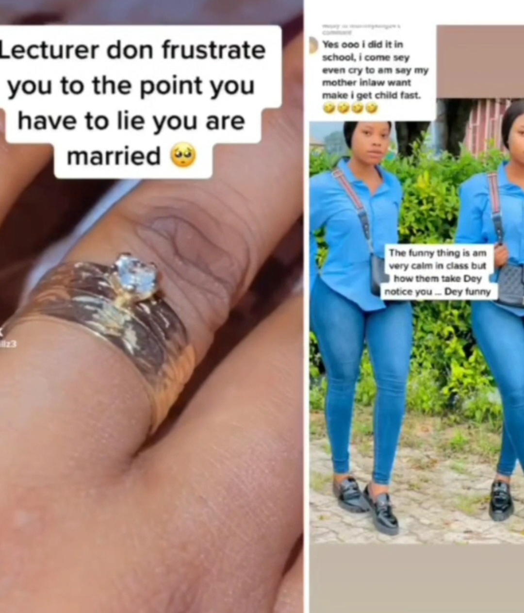 The lady in a video revealed that she had to wear a wedding ring while in school to avoid a lecturer's s3xual advances.