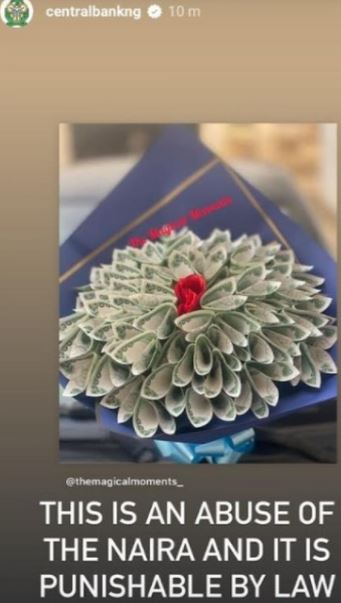 Most Nigerians present money bouquets to their loved ones to celebrate them but the apex bank has issued a stern warning.