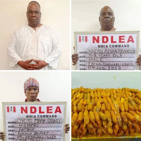 Spokesperson of the agency, Femi Babafemi, in a statement on Sunday, February 12, said the church leader was arrested alongside a student of Emmanuel College of Theology, Samanta, Ibadan, Udezuka Udoka and their freight agent, Oyoyo Mary Obasi over attempt to export methamphetamine and skunk consignments concealed in kegs of palm oil through the NAHCO export shed of the Murtala Muhammed International Airport, MMIA, Ikeja Lagos to Dubai, United Arab Emirate.