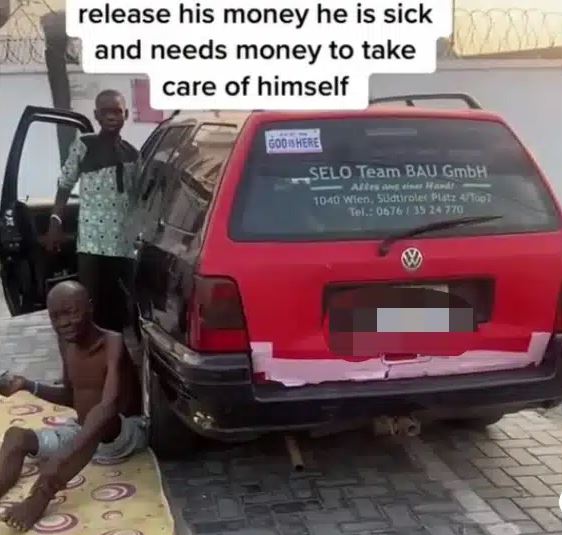 After he couldn’t withdraw, so he decided to lie on his mattress in front of the bank to compel them to release his money for his medical bills.