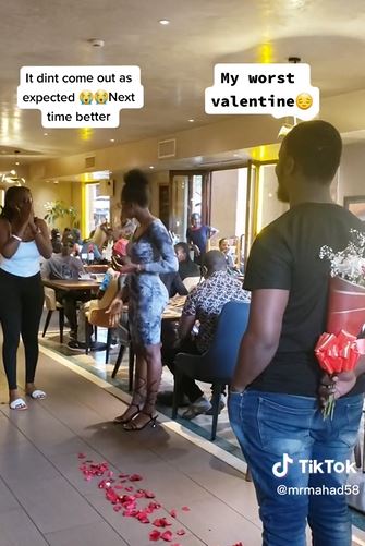 A video has captured the moment a Nigerian lady humiliated a young man who proposed to her with flowers at a restaurant.