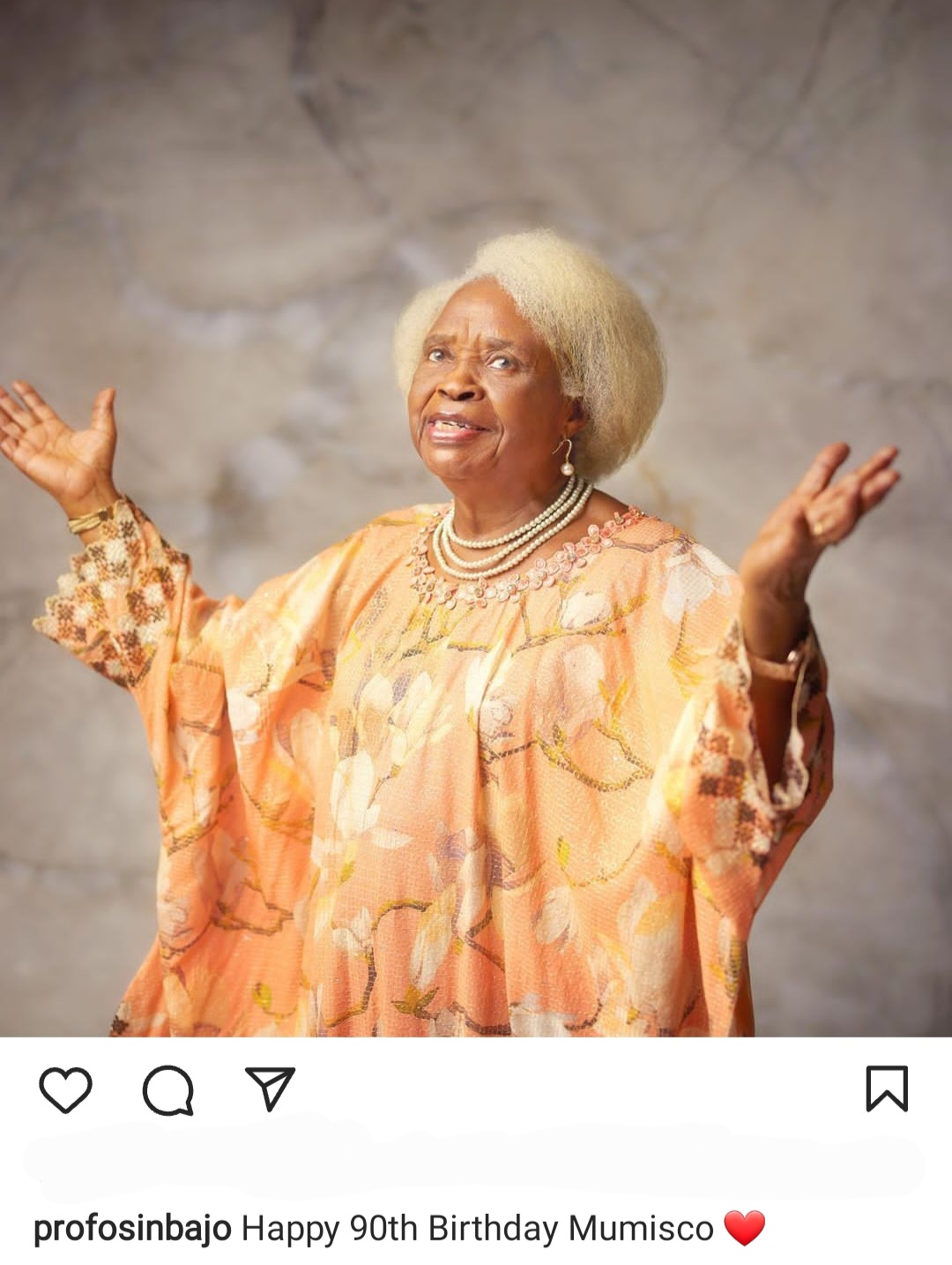 He shared a photo of her and wrote: "Happy 90th birthday Mumisco."