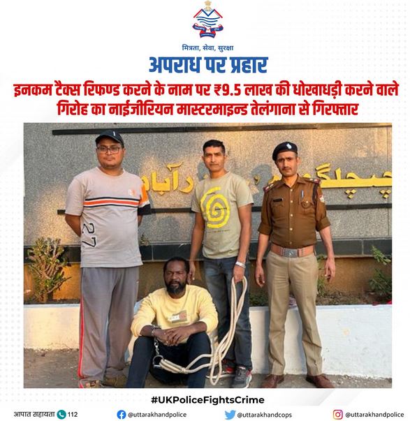 A 39-year-old Nigerian national has been apprehended by the Uttarakhand special task force (STF) and cyber cell in India for allegedly defrauding a man of Rs 9.50 lakh on pretext of helping in income-tax return filing and related refunds by posing as an Income Tax department official on e-mail.