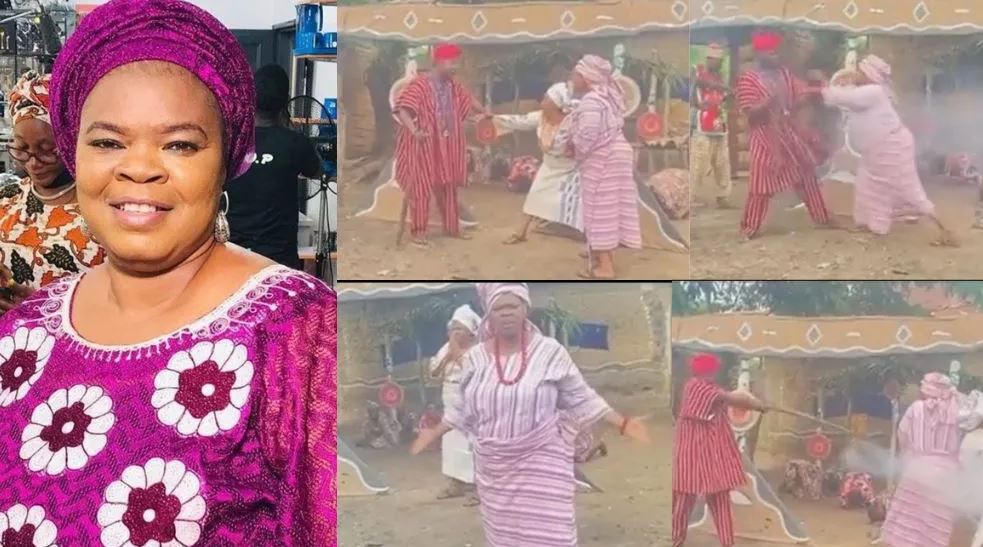 A video has captured the moment veteral actress, Peju Ogunmola got pissed after she was shot on a movie set.