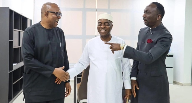 Pastor Paul Enenche has shared a photo of himself, Bishop David Oyedepo, and Peter Obi in what appears to be an endorsement of the Labour Party (LP) presidential candidate, saying “the way to go”.