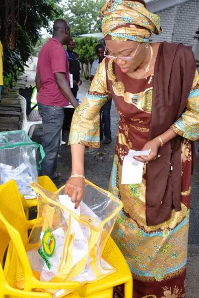 Oluremi Tinubu, wife of the Presidential candidate of the All Progressives Congress casting her votes in Falomo, Lagos.