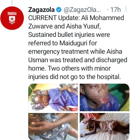 “It was gathered that that attackers suspected to be from the camp of Ali Ngulde, of the Jamā'at Ahl as-Sunnah lid-Da'wah wa'l-Jihād, Boko Haram faction, carried out the attack as the voters were about to start voting and in the process, injured five persons compring of two women and three males.” he added.