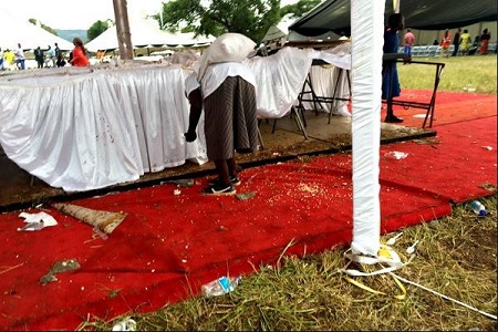 Opposition has claimed this photo of a woman allegedly picking up cake crumbs after Robert Mugabe's birthday bash