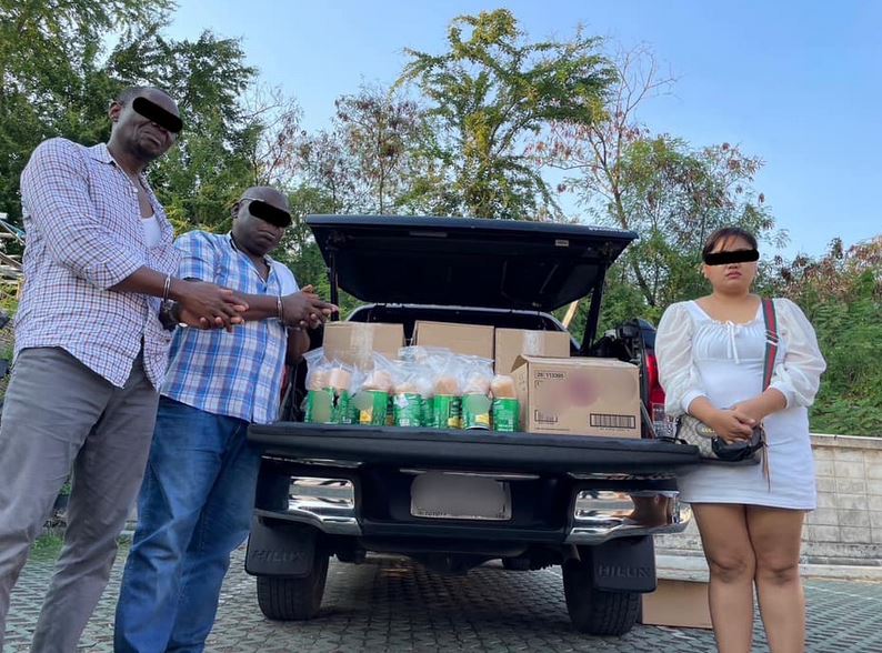 The trio were arrested on Wednesday, March 1, 2023, after officials from the Airport Interdiction Task Force (AITF) and other agencies inspected 11 parcels of canned fruit at a private firm in Bangkok on Tuesday.