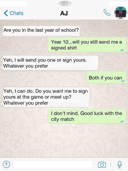 These are the WhatsApp messages uncovered by police which led Adam Johnson to admit grooming a 15-year-old fan. Within just a few messages Johnson asked for the schoolgirl's mobile phone number. The pair then went on to exchange 834 WhatsApp messages over the next two months.