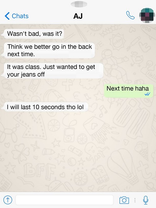 According to The Mirror, here are the nasty and shocking whatsapp messages Johnson exchanged with the girl that nailed him.