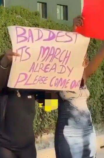 Some were seen holding placards whose inscription read: “Davido The Real Goat”; and another, “Baddest Its March Already. Come Back Online”