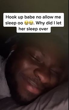 The man captioned the video: “Hookup babe no allow me sleep oo. Why did I let her sleep over.”