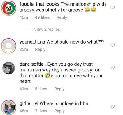 Recall that the reality star was in a relationship with Groovy while they were in the Big Brother house.